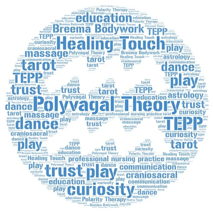 My work meets you where you are and allows your nervous system to settle. It invites the deep currents of life to nourish and heal you. I offer distance energy healing rooted in the Polyvagal Theory, Healing Touch, Polarity Therapy, Breema Bodywork, Craniosacral, Core Synchronism, professional nursing practice and holistic nurse coaching, along with years of embodied energy practice and spiritual study.